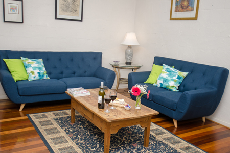 Blue Wren Cottage is a self-catering cottage with a separate bedroom containing a king bed and a king single bed, with a large living/dining area and full kitchen with a separate bathroom.