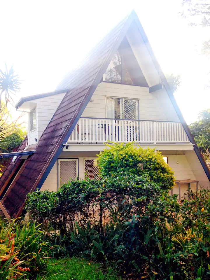 This cute ‘A Frame’ Cottage is set in a beautiful garden setting with a scenic 5 acre backyard for your enjoyment. Enjoy an evening around the outdoor fire pit, looking up at the stars. This Cottage is part of the Secret Garden Weddings & Events Venue. It is well positioned with the IGA Supermarket only 400m, Witches Falls Winery right next door and the Witches Falls National Park 900m away. There is a great walking path that goes along our road to North Tamborine and Gallery Walk.