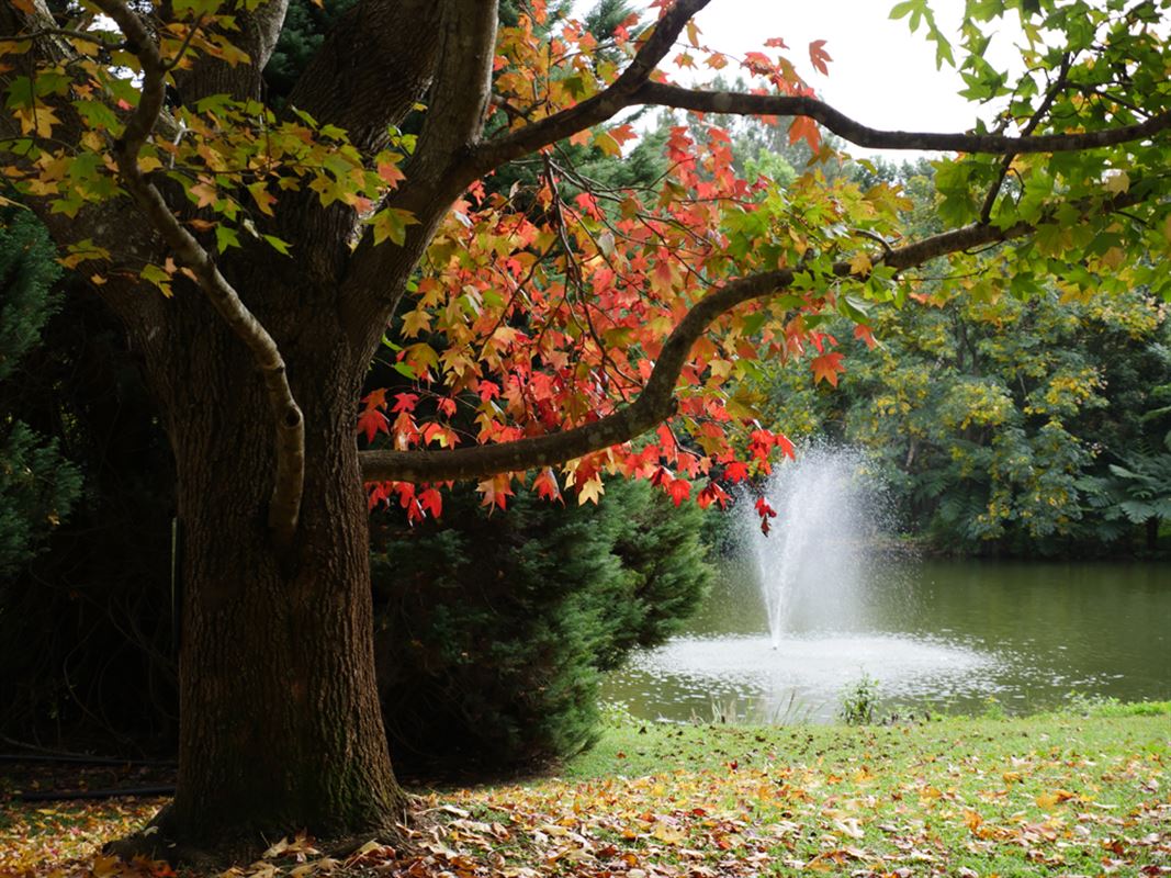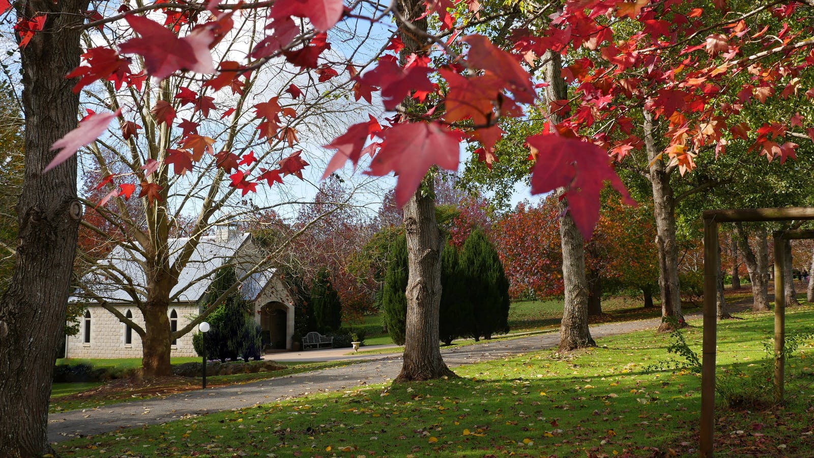 Cedar Creek Estate Vineyard and Winery features an assortment of Liquid Amber trees, a close cousin of Maple Trees which put on a specular display every year. With red and gold trees surrounding a sandstone chapel and a series of picturesque ponds and lakes, this Tamborine Mountain venue puts on a stunning display every Autumn.