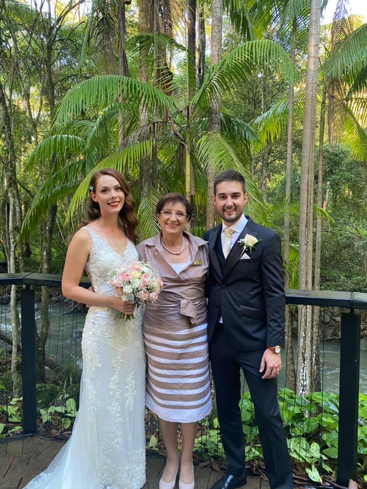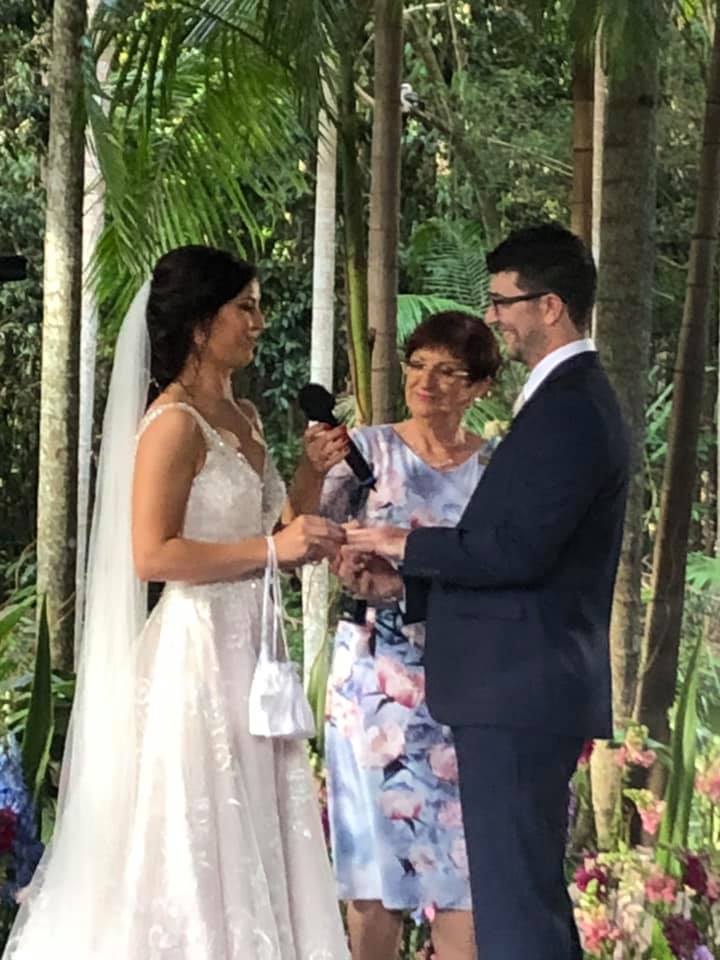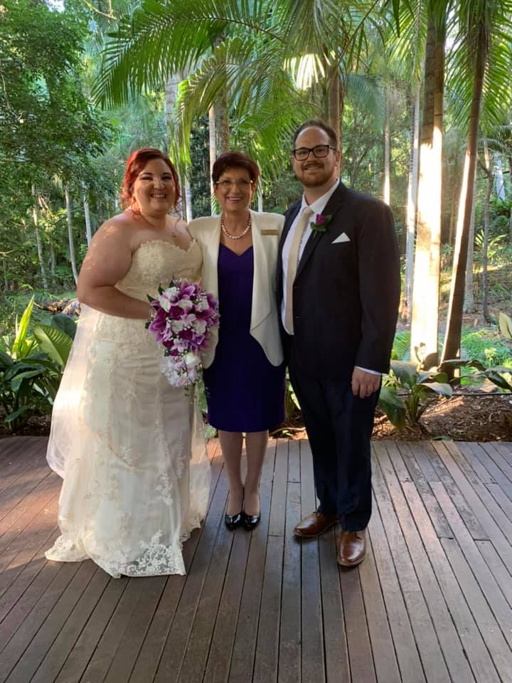 Caroline officiated our wedding at Tamborine Mountain. She was great - made sure everything went smoothly (despite us being a bit scatterbrained at times) and even colour coordinated with our wedding colours.