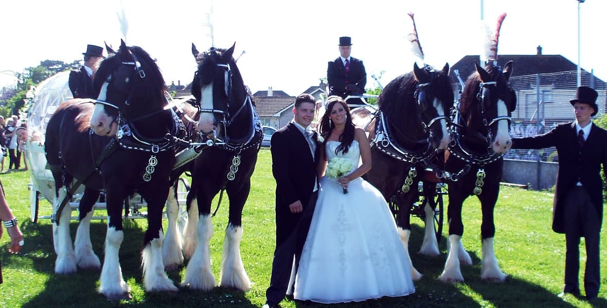 Drayhorse Shires Wedding Carriages are a romantic and luxurious way to take care of your wedding transport needs. With over 20 years of experience overseas and in Australia, Nara and Gavin will provide you with a great experience.