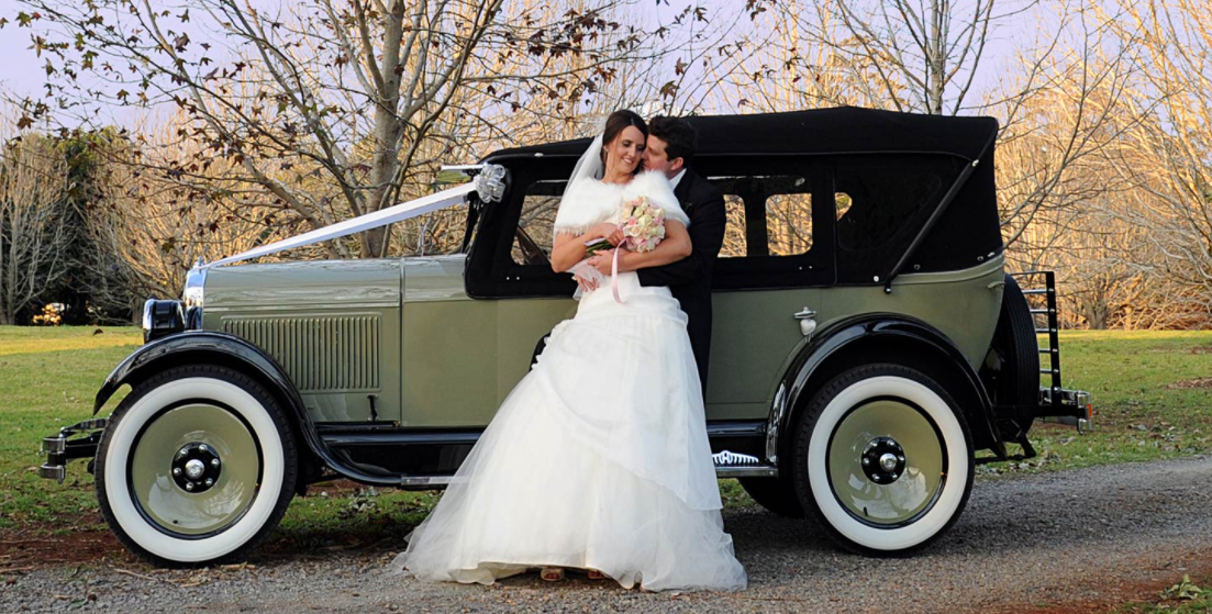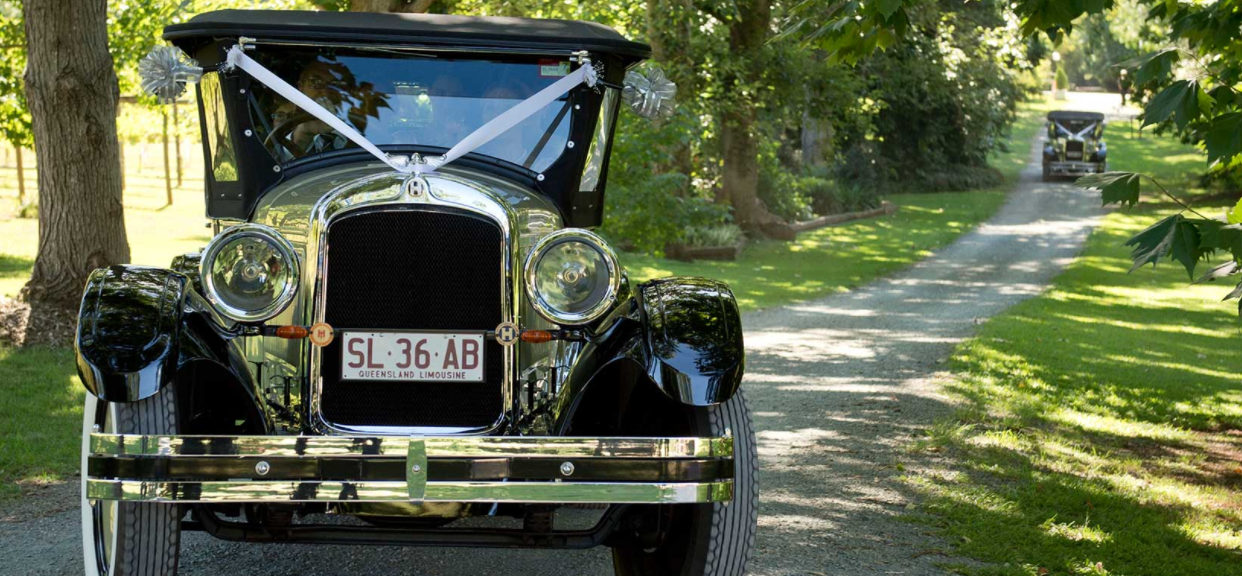 Our luxurious car interiors feature leather seating and plush carpet, air-conditioning, stainless steel trim with ample room for all types of wedding dresses. The cars exterior boasts stunning black guards and tornicade roof, olive-willow body, and finished off with timeless Whitewall tyres. The cars are certified by Queensland Transport, so you can be assured your car is fully reliable and you will arrive at your destination safely and on time. Our Hupmobiles create gorgeous unique and stylish backdrop for wedding photos. To see one car is exceptional, to see both cars together you get the ultimate ‘wow’ factor!