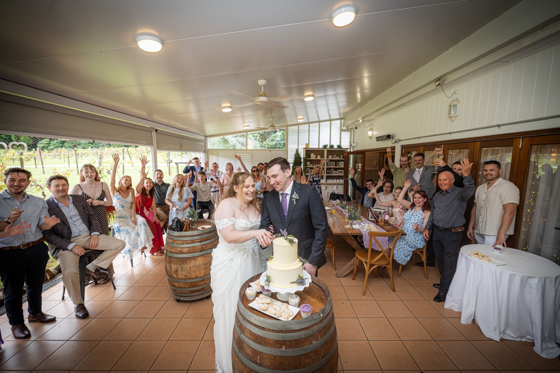We offer our beautiful non-denominational sandstone chapel, set overlooking the vineyard and tree-lined lake, or choose a location on the grounds for an outdoor ceremony. The beautiful grounds of our Estate offers endless photographic opportunities including the tree lined driveway, Vineyard and the many acres of trees and the rainforest boardwalk. For your reception we offer our main reception room “The Cedar Room” overlooking the vineyard, or our gazebo for the intimate style gathering. Our onsite wedding coordinator will be sure to make your dream wedding a reality.